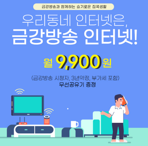 상품 : 금강방송 초고속 인터넷(금강넷) 월9,900원(3년약정)VAT포함.