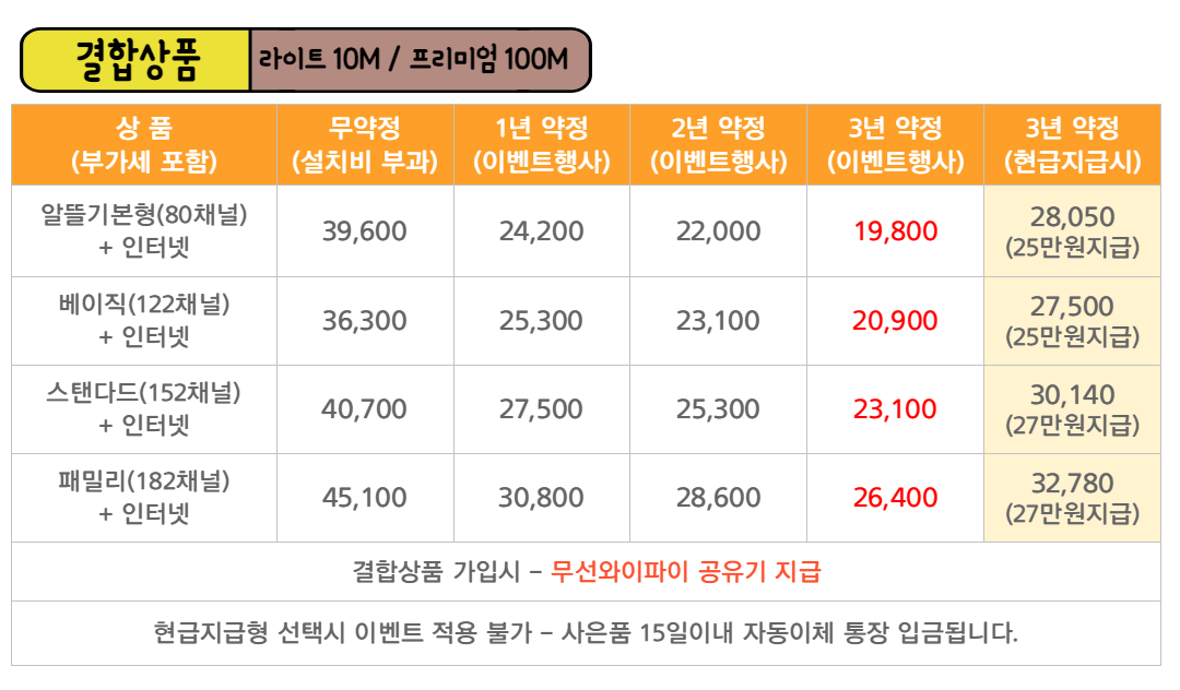 사은품 : 무선 와이파이 공유기 무상지급 (3만원상당)